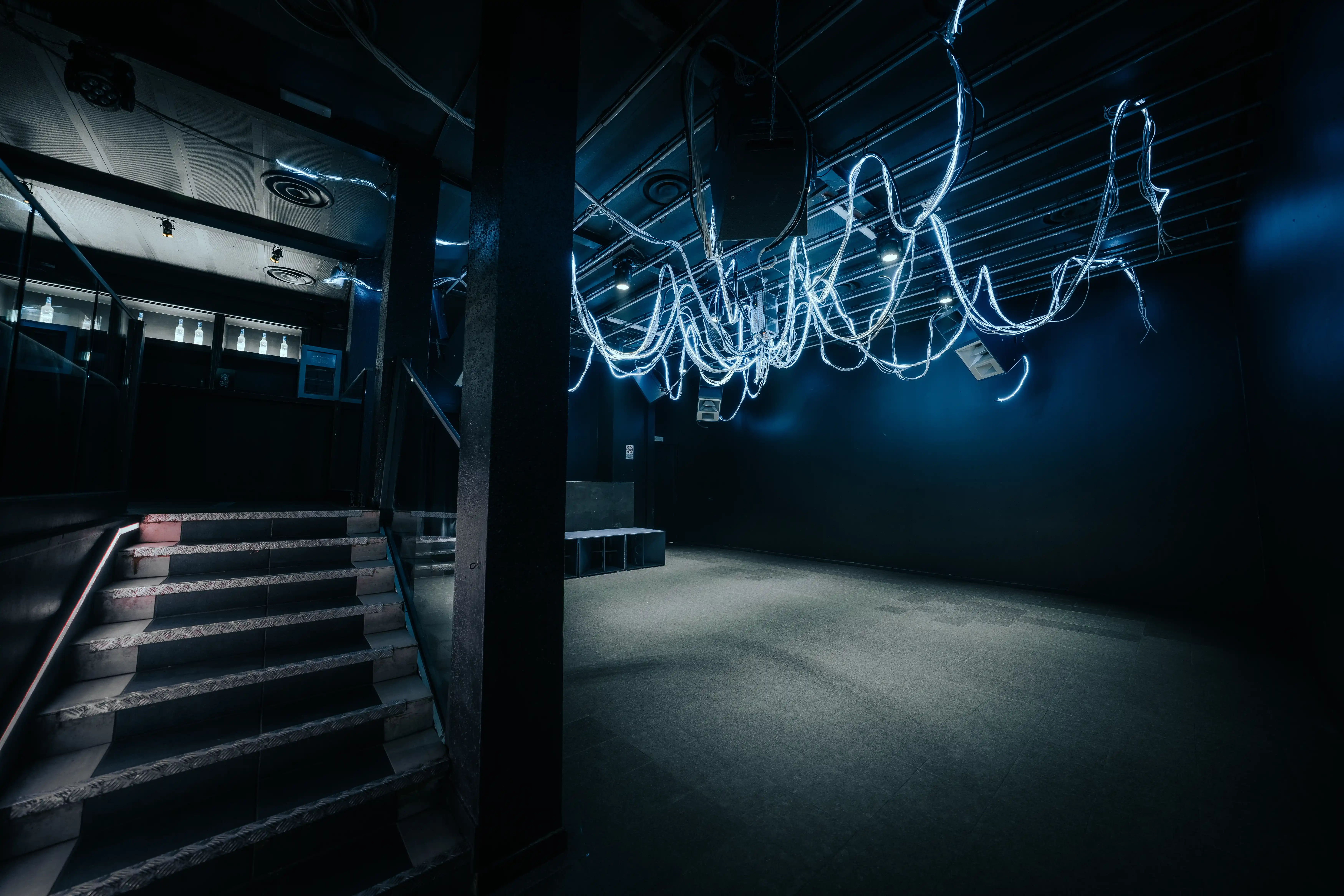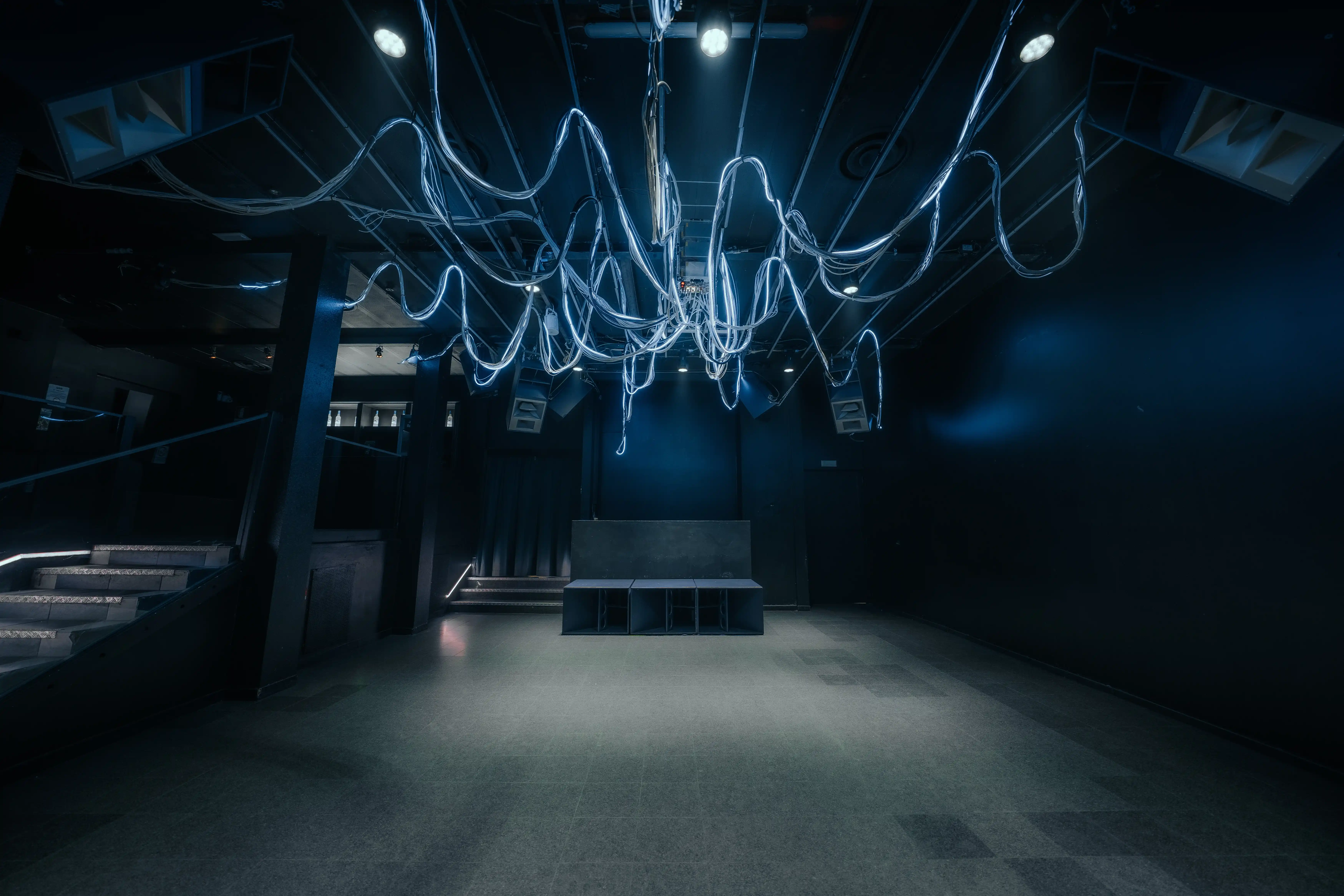 Light is the room. The Club Room features a bespoke LED ceiling installation and a full professional lighting rig, designed by Ausgang Studios — one of Europe's most respected lighting design collectives. Every surface, every beat, every moment — lit with intention.